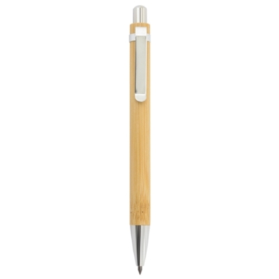 Lápiz realizado en bambú con detalles en metal.Punta de grafito para una escritura sin residuos e infinita.