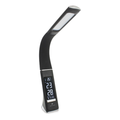 Una pieza indispensable en la decoración de su escritorio. Reloj multifunción donde podrá ver la hora, fecha y temperatura. Regule la luminosidad de su lámpara LED con tres intensidades diferentes.