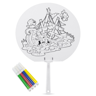 Como novedad en nuestra gama de artículos infantiles para colorear, presentamos el Pay-Pay "Sito". Un pay-pay cuya parte superior ha sido fabricada en cartón resistente, y que presenta en su cara delantera un diseño para que los más pequeños se entretengan coloreando. Su parte trasera es completamente blanca, preparada para ser marcada con el logo de su empresa. Incluye un set de 4 rotuladores de colores. Es el artículo ideal para los más pequeños en sus eventos de primavera-verano.