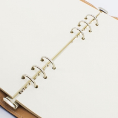 Presentado en bolsa OPP 100 hojas completamente lisas, preparadas para sistema de anillas 3+3