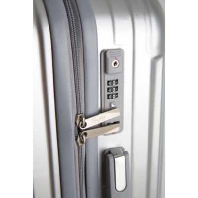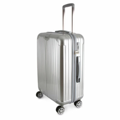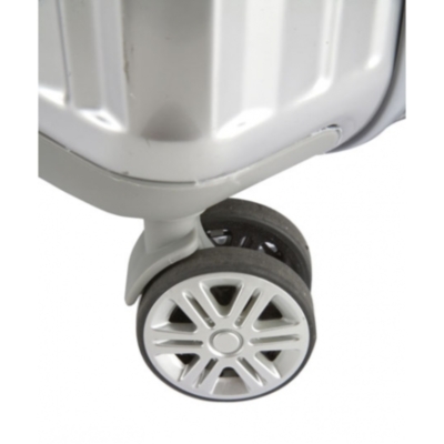 Lujoso trolley de 20" perfecto para cualquier viaje, ya que su tamaño se ajusta al estándar para cabina.Acabado metalizado con diseño acanalado y 4 ruedas dobles con giro 360º para un cómodo desplazamiento.