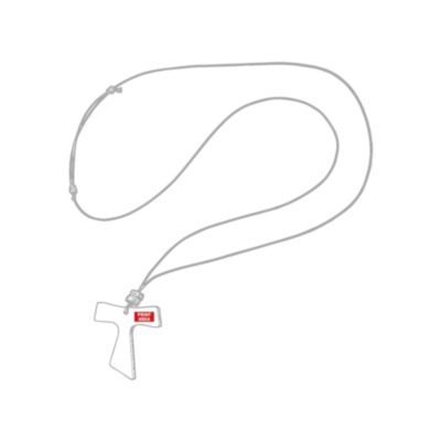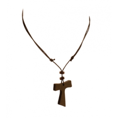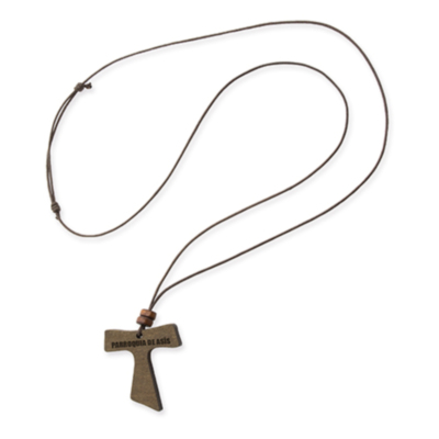 Colgante realizado en madera con cordón de polipiel encerado y nudo corredizo ajustable.