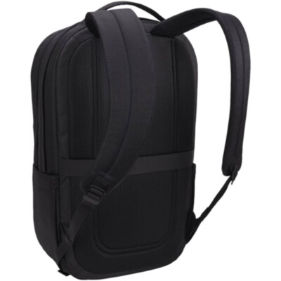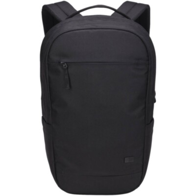 The Case Logic Invigo 15.6" laptop backpack is a simple and refined backpack made of recycled materials with two main compartments and thoughtful organisational features. It is made with a 100% recycled 600D polyester exterior and 150D polyester lining. The padded laptop compartment protects a 15.6'' laptop and the tablet sleeve can hold a 12.9'' tablet. Inside the backpack there are slip pockets to store small accessories, and a zipped mesh pocket providing additional secure storage for small items such as keys. At the exterior of the backpack there is a hidden back panel security pocket that keeps vital items like passport or wallet hidden yet close at hand. The front pocket provides quick storage of items while on-the-go, and the 2 side pockets are suitable for water bottles or an umbrella. The backpack also features a luggage pass-through strap to attach the bag to rolling luggage for effortless travel.