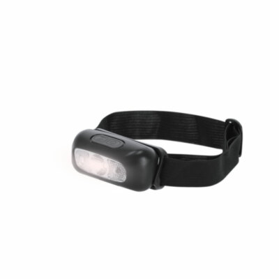 Linterna frontal con cinta elástica ajustable para cabeza, brazo… Con luz LED y 3 posiciones de iluminación (2 posiciones fijas y 1 posición intermitente). Con batería recargable de 400 mAh incorporada y cable de carga incluido de USB-A a USB-C en color negro.
