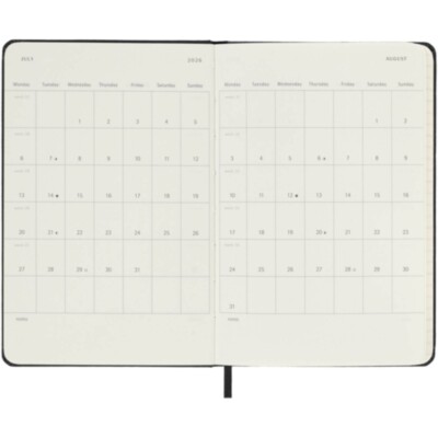 Plan out every day in the minutest detail with the Moleskine 12-month hard cover daily planner. Dated from January to December 2025, this pocket size planner is formatted to show one whole day per page – to have plenty of space to record events, appointments, to-dos, reminders and plans. Throughout the year, it grows into a day-by-day physical record of everything accomplished. Features ivory-coloured acid-free paper, a black elastic closure, a page ribbon marker, a colour coordinated expandable inner pocket, and stickers for personal customisation, as well as year stickers for the spine.