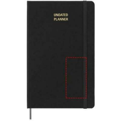 The Moleskine hard cover undated weekly planner can be started at any point of the year. It is an excellent choice for those seeking a flexible and durable planning tool. The month, week and date spaces are left blank, allowing more flexibility and freedom than a dated planner. By filling in the dates yourself, you can skip any gaps and only use the pages you need. Features 12 customizable month dividers, five undated weeks per month, an elastic closure and matching ribbon bookmark, ivory-coloured 70 g/m2 acid-free paper, and an expandable inner pocket.