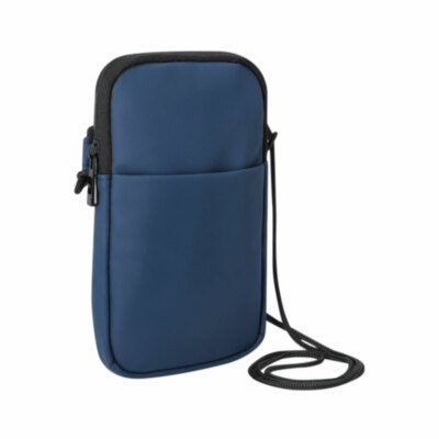 Clásico portamóvil, fabricado en suave y elegante PU. Compartimento principal con cierre de cremallera invisible y tirador metálico. Con cinta de cordón, bolsillo exterior abierto, e interior forrado.