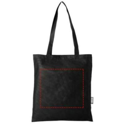 Made from durable and tear resistant RPET, the Zeus GRS recycled large tote bag is a perfect and more responsible option for fairs or conferences. Its slim design makes it an elegant model and suitable for carrying lightweight items like a notebook and a pen. The handles are 29 cm long and therefore the tote bag is easy to carry over the shoulder. Resistance up to 5 kg weight.