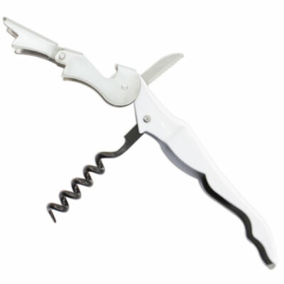 Nueva generación de sacacorchos con doble palanca, para una suave y fácil extracción del tapón. Incluye un práctico abrebotellas con mango ergonómico en color.