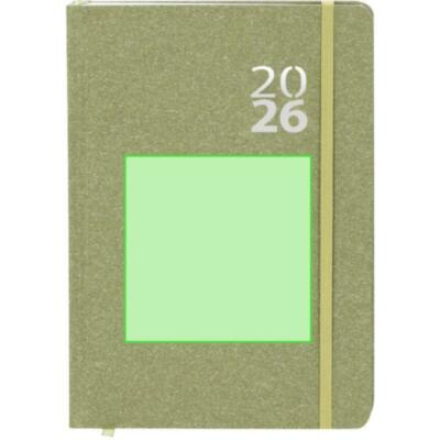 Agenda de tamaño A5 en Cartón Reciclado. Con cubiertas rígidas y elástico de cierre a juego. Incluye caja kraft de presentación. Con distintitivo ECO.Diseño página día, zona de anotaciones y marcapáginas de tela. En 2 idiomas: castellano e inglés. El Cartón Reciclado proviene del reaprovechamiento de excedente de fabricaciones y reciclaje de papel en el final de su vida útil, convirtiéndose en un lienzo ecológico y sostenible.