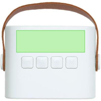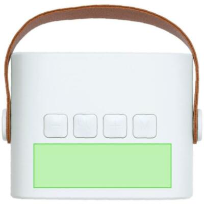 Altavoz estéreo de diseño Bluetooth® de 5W en ABS reciclado (RABS). Con conexión Bluetooth® 5.3 y 5W de potencia, y batería de 1200 mAh a través de cable USB-Tipo C incluido. Con botón de ON/OFF y controles de volumen. Dispone de una asa de transporte con diseño retro. Incluye distintivo logotipo de RABS.