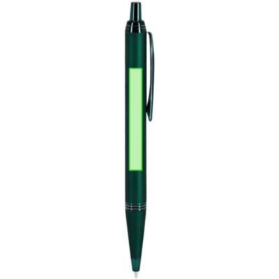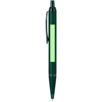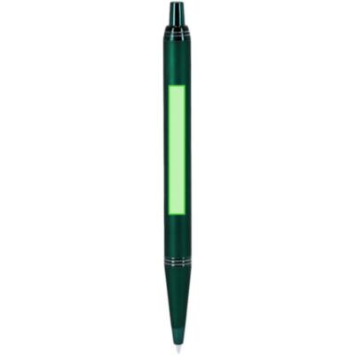 Bolígrafo con cuerpo en aluminio, acabado gomoso y detalles cromados. De mecanismo pulsador, con cartucho jumbo y tinta azul.