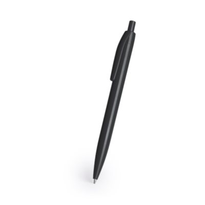 Bolígrafo de mecanismo pulsador de acabado brillante. Fabricado en ABS de tinta negra.