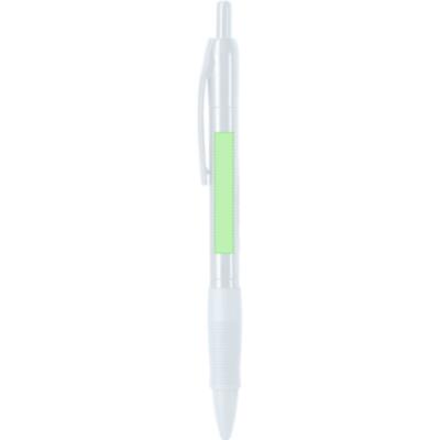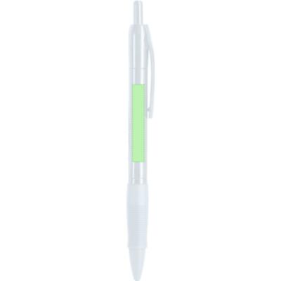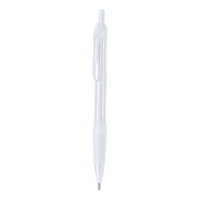 Bolígrafo de mecanismo pulsador y empuñadura disponible acabado gomoso. Fabricado en ABS de tinta negra.