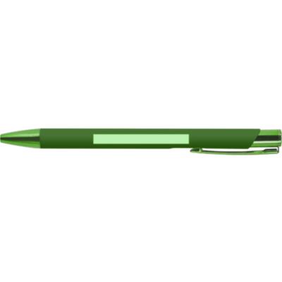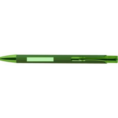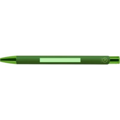 Bolígrafo de mecanismo pulsador. Acabado en aluminio reciclado gomoso, de cartucho jumbo y tinta azul. Diseño especial para grabado láser con resultado en efecto espejo.Con distintivo logo de Aluminio Reciclado.