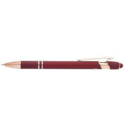 El bolígrafo "Nanna" con acabado en oro rosa tiene un cuerpo de aluminio reciclado y un lápiz táctil de silicona. El aluminio reciclado disminuye la cantidad de residuos en los vertederos y ayuda a conservar los recursos naturales con el objetivo de reducir las emisiones de gases de efecto invernadero. Color de la tinta: Negro. Longitud de escritura: 800 metros. Tamaño del plumín: 1,0 mm.