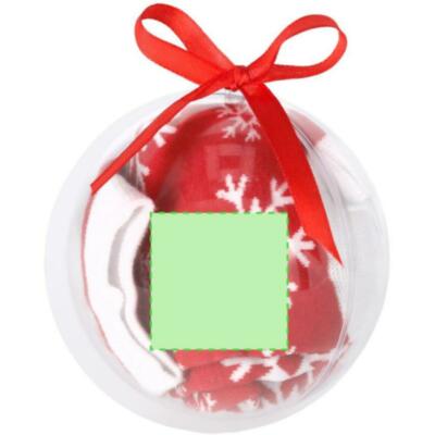 Suaves y cálidos calcetines con motivos navideños. Presentados en original bola de navidad transparente con lazo rojo. Fabricados en suave poliéster y disponibles en tallas S-M y L-XL. Un original regalo para lucir con estilo en navidad.