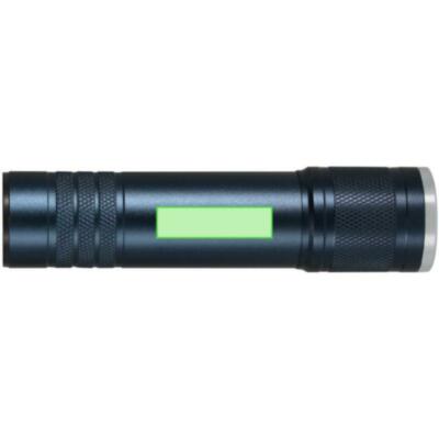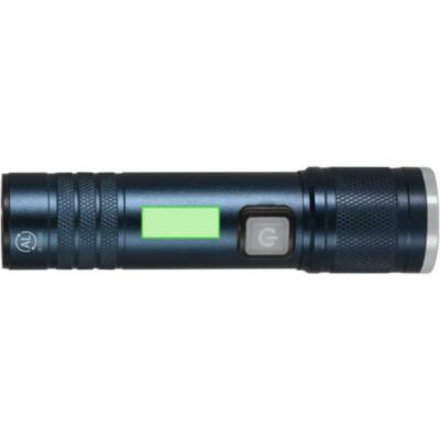 Linterna fabricada en Aluminio reciclado de acabado mate con zoom extensible. Con 1 luz COB con tres posiciones, alimentadas con batería de capacidad 800mAh, cable de carga Tipo C incluido de 5V. Con botón on/off en lateral y elementos decorativos cromados.