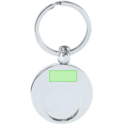 Llavero metálico con moneda extraíble y anilla metálica cromada.