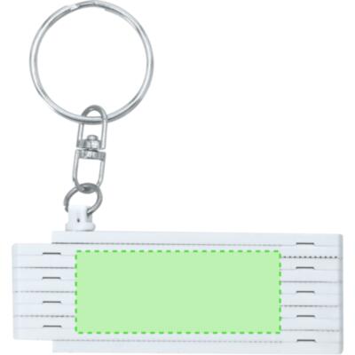 Llavero regla plegable de 50 cm en resistente ABS con anilla metálica giratoria. Escala en centímetros de color negro visible por ambas caras. Con posiciones ajustables a 90º, 180º y 270º para mayor versatilidad.
