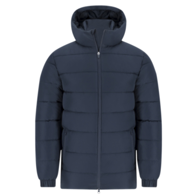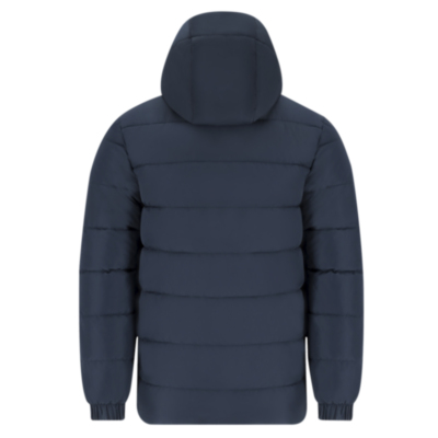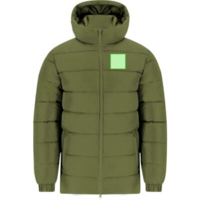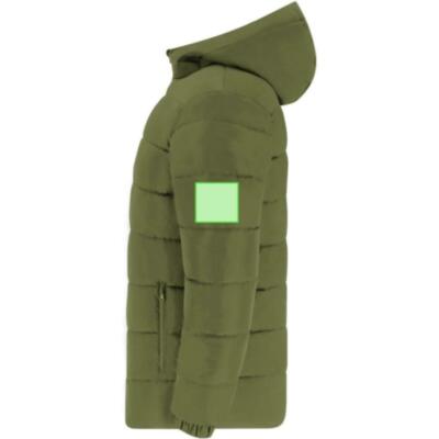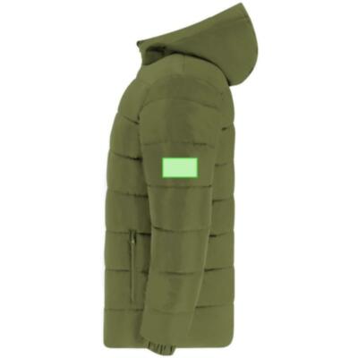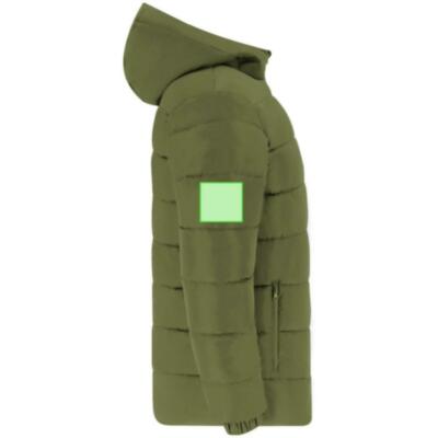 Parka unisex acolchada con capucha fija y visera integrada. Incorpora cremallera frontal a tono con doble tirador y protector de barbilla. Puños elásticos para un ajuste cómodo y dos bolsillos laterales con cierre de cremallera a juego. Incluye acceso interior para marcaje en pecho izquierdo y espalda, ideal para personalización.