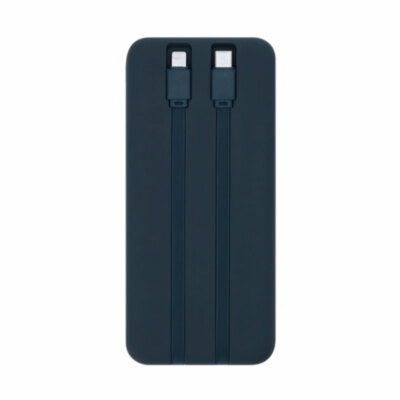 Batería auxiliar externa en ABS reciclado con acabado gomoso y 10.000 mAh de capacidad de carga. Con pantalla con indicador de carga y botón ON/OFF en el lateral. Incluye salida Tipo C y Lightning dual para carga simultánea de 2 dispositivos y conexión Tipo C y USB de salida. Con distintivo logo RABS en la parte transera.
