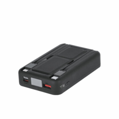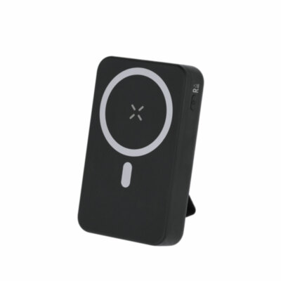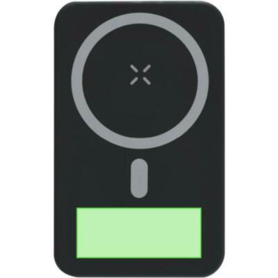 Batería auxiliar externa de 15W gran capacidad de carga 10.000 mAh en ABS Reciclado. Con fijación magnética Magsafe. Cuenta con 1 salida USB, Lightning, Micro USB y entradas Tipo C y Lightning. Además, cuenta con práctico y funcional soporte para poner tu smartphone verticalmente. Incluye distintivo logotipo RABS.