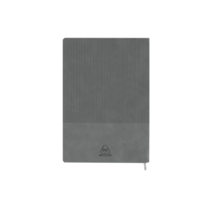 Bloc PU Reciclada. Portada Flexible. 96 Hojas. Bolígrafo Aluminio Reciclado. Acabado Caucho