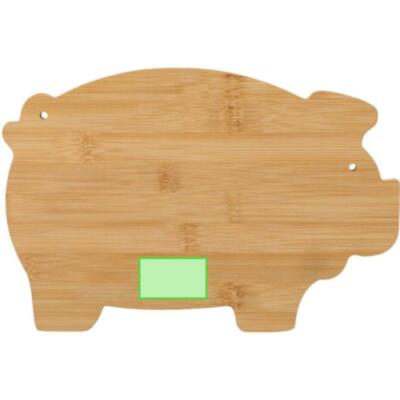 Tabla de cocina con original diseño en forma de cerdito, fabricada en suave bambú y con agujero para colgar, muy fácil de limpiar y guardar.