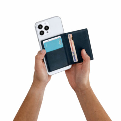 Tarjetero multifuncional magnético para smartphone confeccionado en elegante PU. Plegable con cierre magnético con 4 compartimentos.