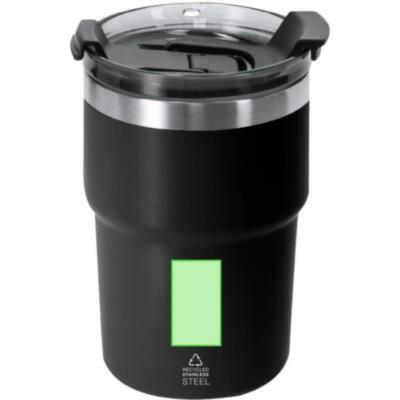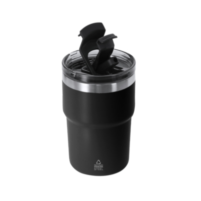 Vaso térmico con doble pared de 350 ml de capacidad. Fabricado en Acero Inoxidable Reciclado en acabado semi mate. Cuenta con doble sistema de bebida, adaptándose a las preferencias de uso. Con tapa de sistema de sellado hermético. Libre de BPA. Con distintivo de Acero Inoxidable Reciclado.