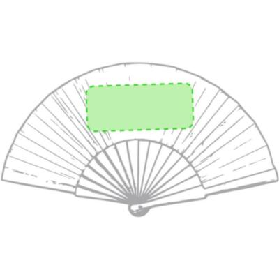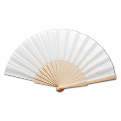 Abanico de línea nature con varillas fabricadas en resistente madera de acabado natural. Tela en resistente poliéster 190T, disponible en variada gama de colores y presentado en una caja de cartón individual blanca.