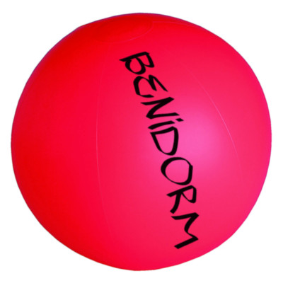 Balón inflable de PVC en variada gama de vivos colores. Disponible en diseños monocolor y bicolor.