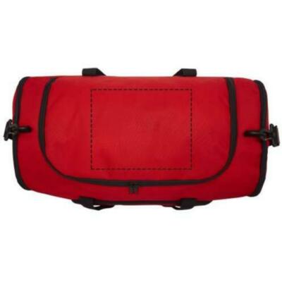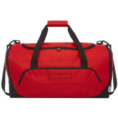 Bolsa de lona duradera hecha 100 % de plástico reciclado que contribuye a la reducción de los desechos plásticos. Cuenta con un gran compartimento principal y un bolsillo frontal con cremallera, correa acolchada para el hombro y asas acolchadas. Para fabricar esta bolsa se reciclaron aproximadamente 27 botellas.