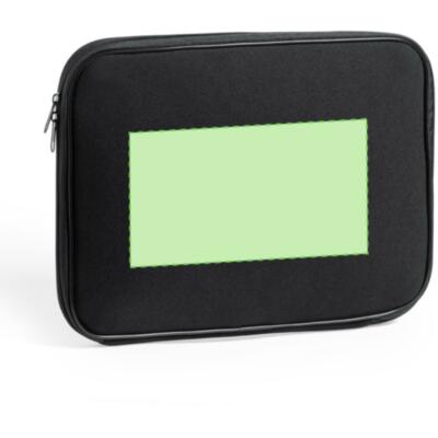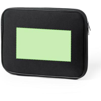 Funda para ordenador portátil, fabricada en resistente soft shell. En elegante color negro, con interior acolchado. Cierre de cremallera a juego con doble tirador. Para ordenador portátil o tablet de hasta 15 pulgadas.