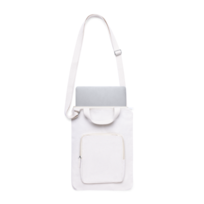 Original funda para ordenador portátil, fabricada en resistente canvas de acabado natural. Compartimento principal con cierre de cremallera a juego y asa de transporte. Con cinta bandolera ajustable a juego y bolsillo exterior con cierre de cremallera. Para ordenador portátil o tablet de hasta 15 pulgadas. El canvas es un tejido muy versátil y duradero, compuesto en su mayor medida de algodón. Contribuye al cuidado del medio ambiente, ya que gracias a su resistencia ofrece una gran capacidad de reutilización.