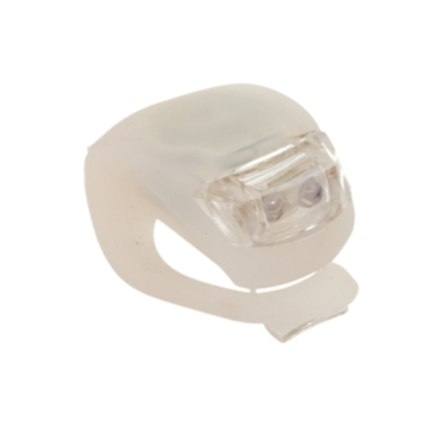 Linterna para barra de 2 ledes y 3 posiciones de iluminación. Con cuerpo en vivos colores y de suave acabado en silicona con alto poder de ajuste. Pila de botón incluida y presentada en caja individual.