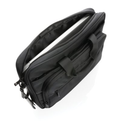 Haz que el viaje diario al trabajo sea un poco más fácil y mucho más elegante con este maletín para ordenador portátil. El maletín está hecho de poliéster reciclado duradero 1680D con marcador AWARE ™ con bonitos detalles de PU y cuenta con múltiples bolsillos para almacenamiento y organización. Cuenta con un bolsillo acolchado para ordenador portátil de 15.6" y un bolsillo frontal adicional con cremallera para guardar tus otros artículos esenciales diarios. El exterior está hecho con poliéster reciclado 1680D, el forro es poliéster reciclado 150D. Con marcador AWARE ™ que valida el uso genuino de materiales reciclados Cada maletín ahorra 21,8 litros de agua y ha reutilizado 36,66 botellas PET de 0,5 L. El 2% de las ganancias de cada producto vendido que contenga AWARE ™ se donarán a Water.org.