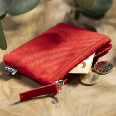 Monedero de línea nature en resistente 600D RPET, elaborado a partir de plástico reciclado para así fomentar la reutilización de residuos plásticos y contribuir a la sostenibilidad del planeta. Con cierre de cremallera y tirador a juego. Disponible en variada gama de colores, con distintivo RPET en etiqueta exterior.