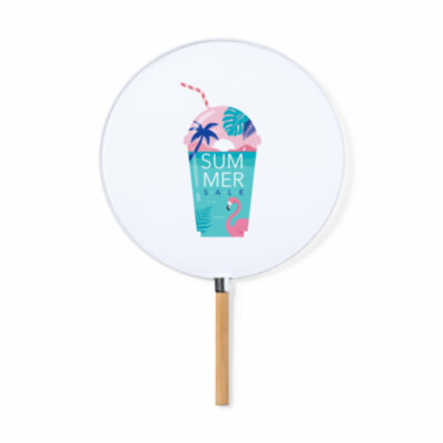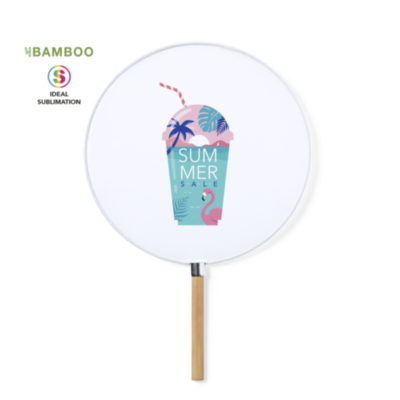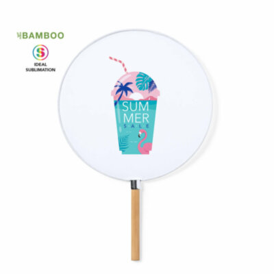 Elegante Pai Pai fabricado en resistente poliéster especial para sublimación. Con mango en bambú y detalle en cromado.