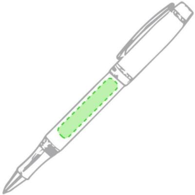 Roller de capucha de Antonio Miró en elegante diseño bicolor y suave cuerpo metálico en sobrio color negro. Con logotipo de la marca bajo la anilla, clip y punta en acabado plateado brillante. Presentado en estuche individual en color negro con logotipo de la marca. En tinta azul.