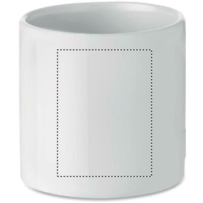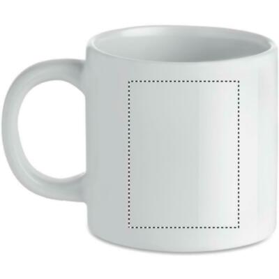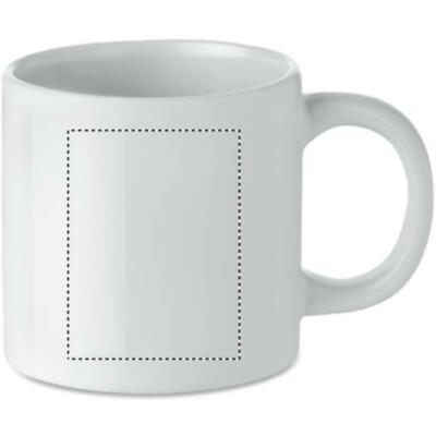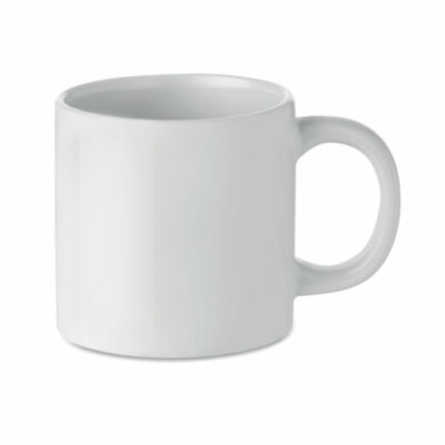 Taza de cerámica de 200 ml de capacidad con recubrimiento especial para sublimación. Embalaje individual en caja de cartón blanca.